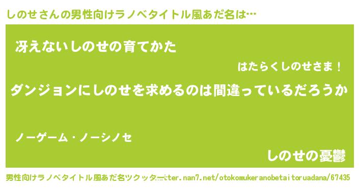 | 胡散臭い通販商品みたいなあだ名 | 『信頼と実績のペンダント…その名も「しのせ」』 |