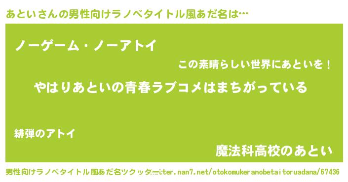 | 自動車の名前っぽいあだ名 | 『アクア』『アンR』『レクアス』 |
