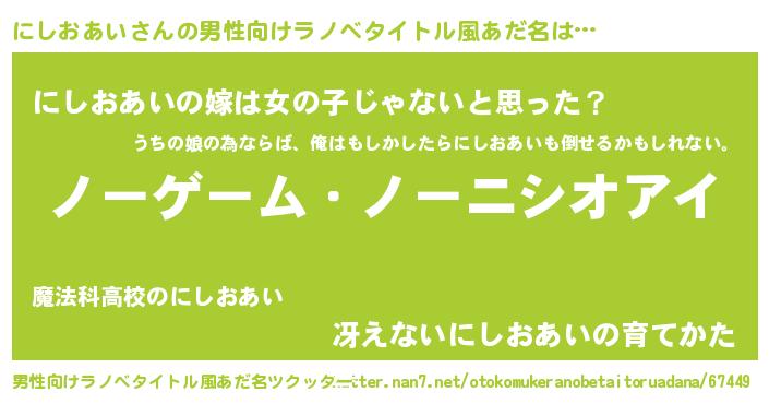 | ポケモン風あだ名 | 『ニックウザ』『ヒニシオアイ』 |