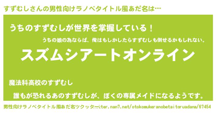 | 女子向けラノベタイトル風あだ名 | 『すずむし姫と円卓の騎士』 |