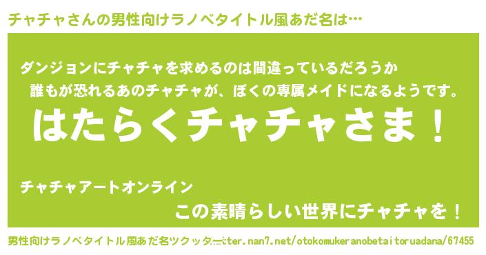 チャチャさんの男性向けラノベタイトル風あだ名をツクッター!