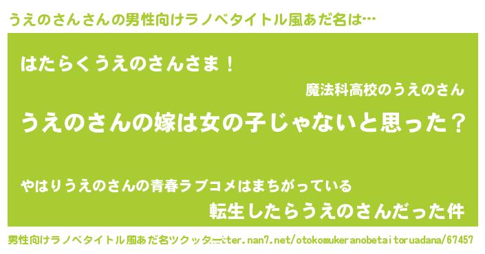 | 女子向けラノベタイトル風あだ名 | 『うえのさん様がみてる』 |