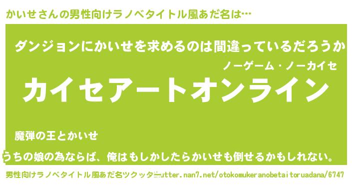 | 胡散臭い通販商品みたいなあだ名 | 『億万長者になれる水晶球…その名も「かいせ」』 |