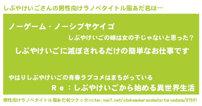 | 伝説のあだ名 | 『救世主となる占い師しぶやけいご』 |