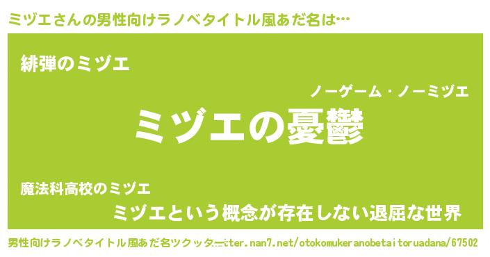 | 女子向けラノベタイトル風あだ名 | 『(仮)ミヅエのやんごとなき事情』 |