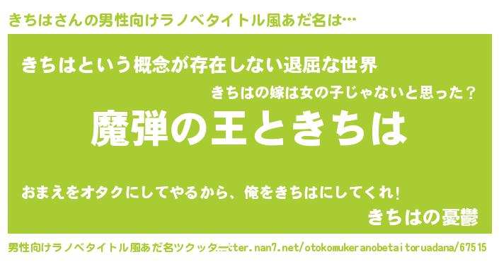 | 意味不明あだ名 | 『住所不定無職きちは(81歳)』 |