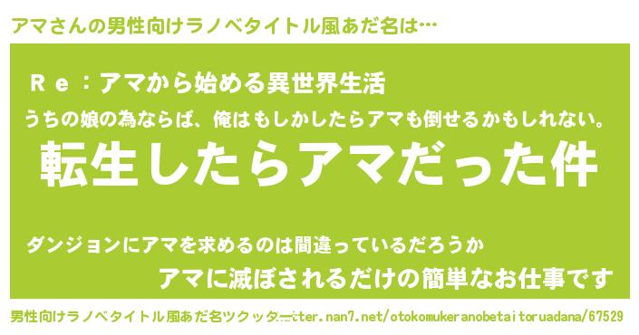 | 女子向けラノベタイトル風あだ名 | 『アマの玉の輿計画!』『アマの婚約者』 |