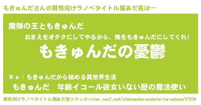 | 女子向けラノベタイトル風あだ名 | 『(仮)もきゅんだのやんごとなき事情』 |