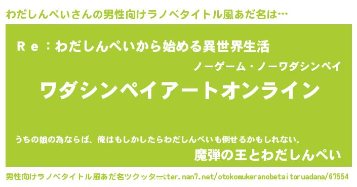| 胡散臭い通販商品みたいなあだ名 | 『億万長者になれる霊験あらたかなお札…その名も「わだしんぺい」』 |