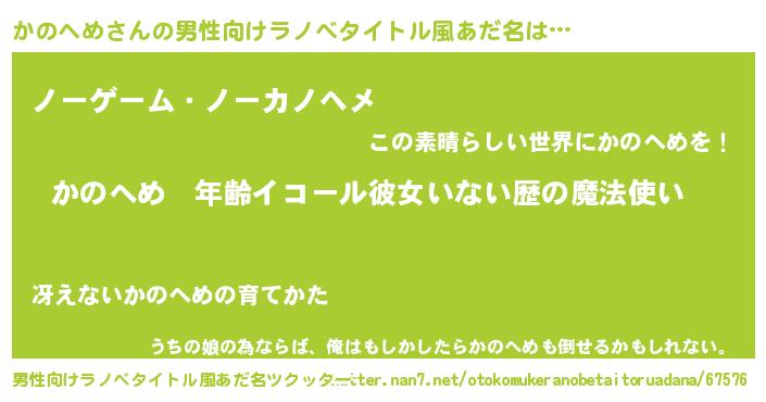 | 女子向けラノベタイトル風あだ名 | 『かのへめの玉の輿計画!』 |