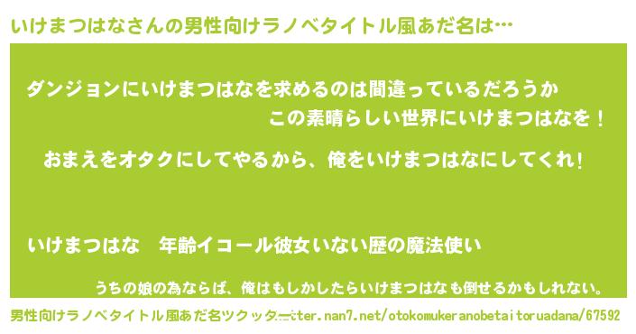 | 女子向けラノベタイトル風あだ名 | 『いけまつはな夫妻のなれそめ』 |