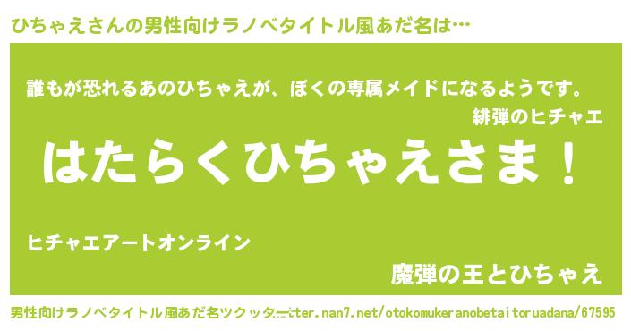 | 胡散臭い通販商品みたいなあだ名 | 『絶対に幸福をもたらす招き猫…その名も「ひちゃえ」』 |