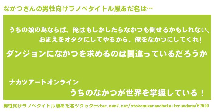 | 意味不明あだ名 | 『とにかく怪しいなかつ』『自称なかつ』 |