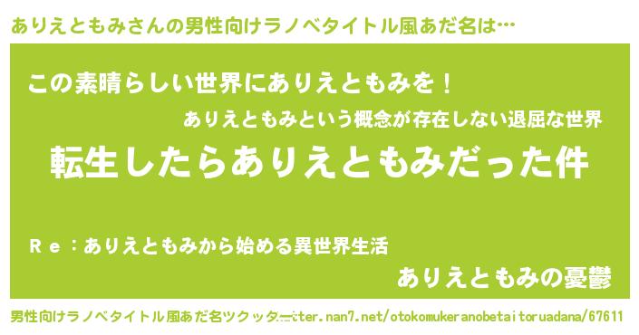 | ヘコむあだ名 | 『ありにゅー』『ありえともみ(遠い目)』 |