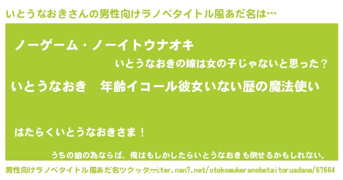 | 女子向けラノベタイトル風あだ名 | 『いとうなおきの玉の輿計画!』 |