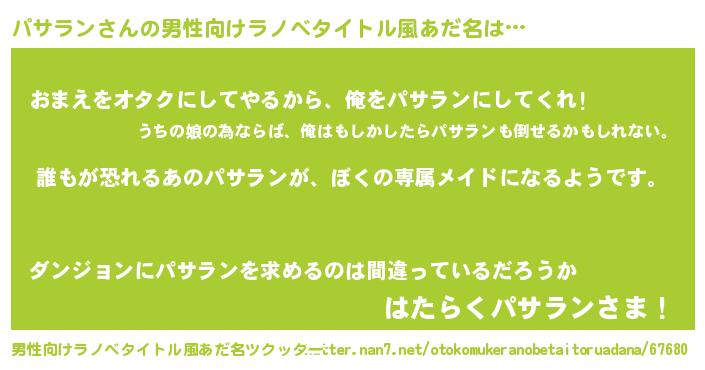 パサランさんの男性向けラノベタイトル風あだ名をツクッター!