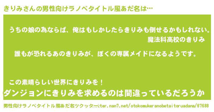 | 女子向けラノベタイトル風あだ名 | 『異世界でカフェきりみを開店しました。』 |