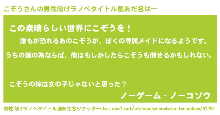 | 女子向けラノベタイトル風あだ名 | 『こぞうの婚約者』『死神こぞうの再婚』 |