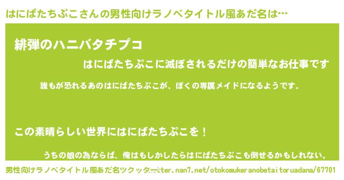 | ヘコむあだ名 | 『はにばたちぷこ(小並感)』『つくし』 |