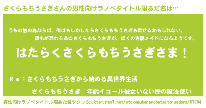 | 胡散臭い通販商品みたいなあだ名 | 『幸せが訪れる高級そうな皿…その名も「さくらもちうさぎ」』 |