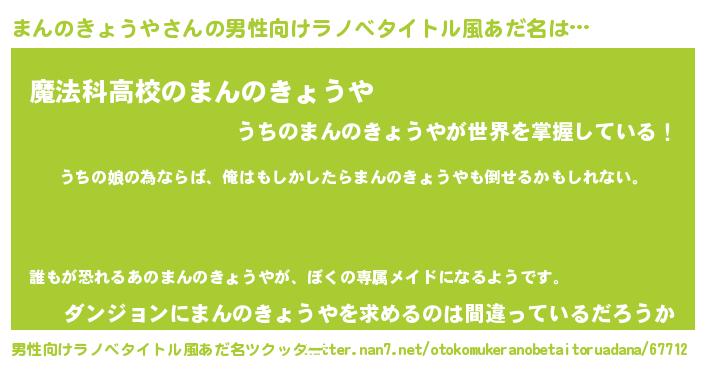 まんのきょうやさんの男性向けラノベタイトル風あだ名をツクッター!