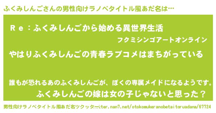 | 女子向けラノベタイトル風あだ名 | 『ふくみしんご伯爵の花嫁』 |