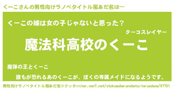 | 女子向けラノベタイトル風あだ名 | 『くーこなんてお断りですっ。』 |