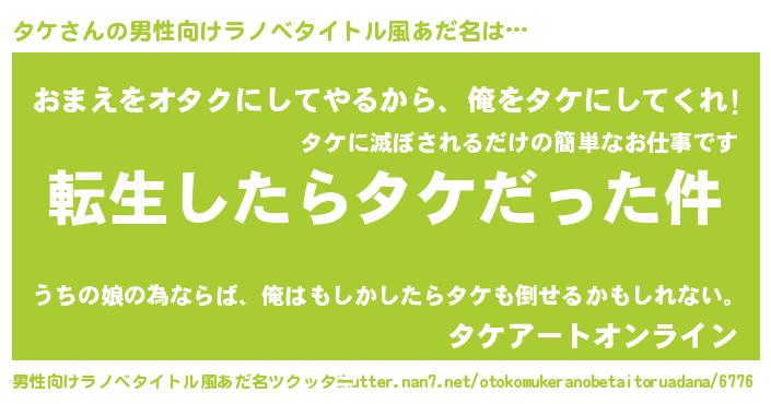 | 胡散臭い通販商品みたいなあだ名 | 『お金では代えられないイリジウム磁石…その名も「タケ」』 |