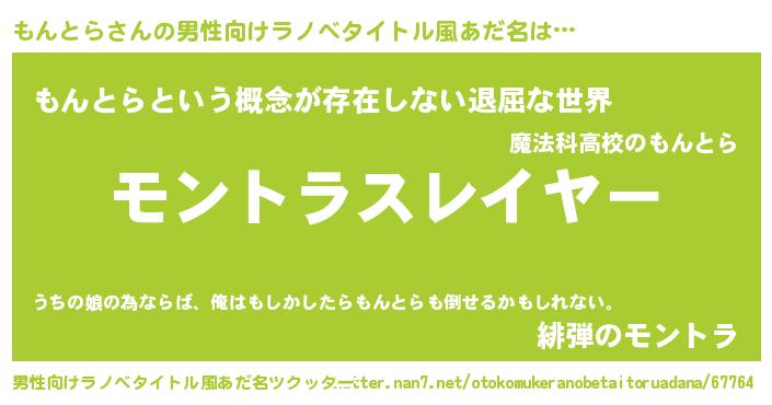 | ヒーロー風カッコイイあだ名 | 『ネオモントラ』『超時空戦士モントラ』 |