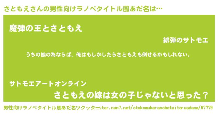 | 女子向けラノベタイトル風あだ名 | 『さともえ伯爵の花嫁』 |