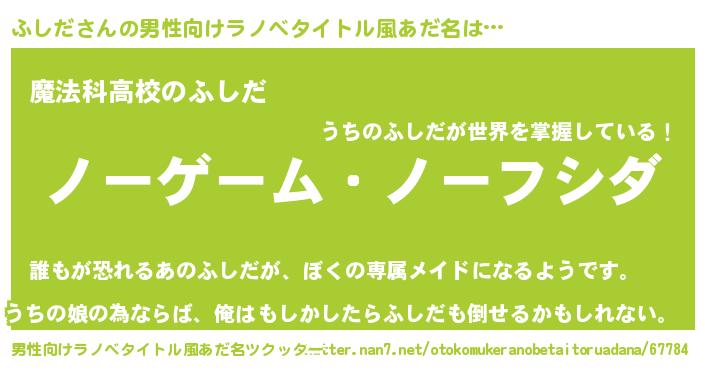 | 女子向けラノベタイトル風あだ名 | 『死神ふしだの再婚』『ふしだの婚約者』 |