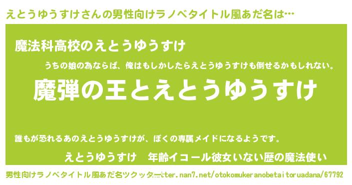 | 意味不明あだ名 | 『住所不定無職えとうゆうすけ(74歳)』 |