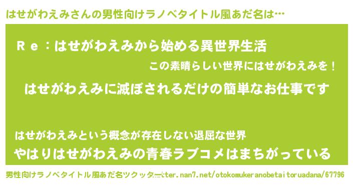| 意味不明あだ名 | 『自称はせがわえみ』 |