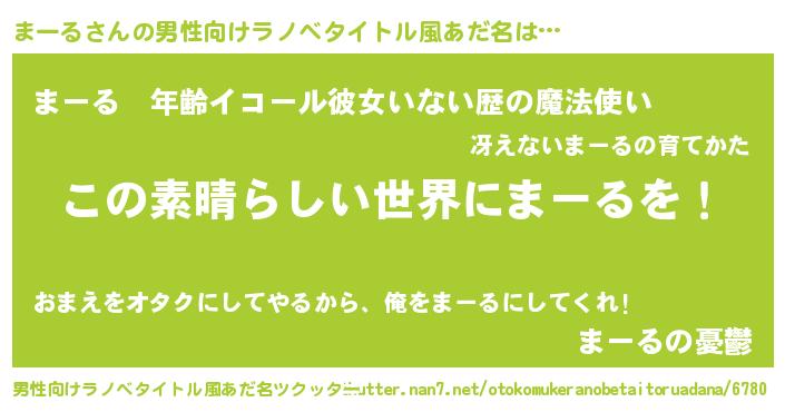 | 胡散臭い通販商品みたいなあだ名 | 『あなたにだけ特別に提供する限定10本のレアな日本酒…その名も「まーる」』 |
