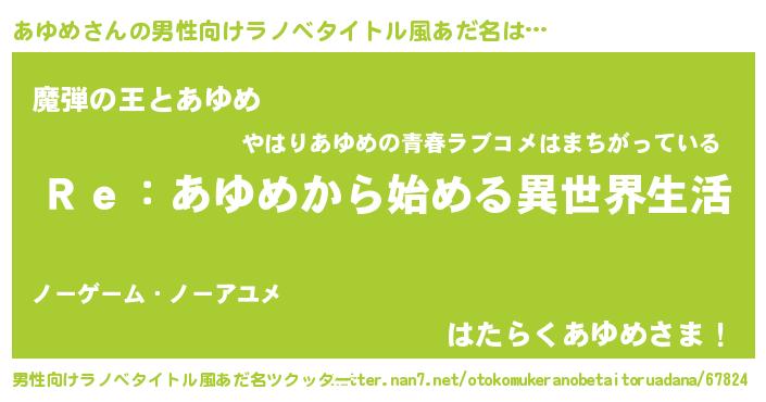 | 意味不明あだ名 | 『自称あゆめ』『住所不定無職あゆめ(14歳)』 |