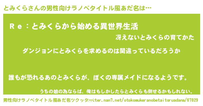 | 胡散臭い通販商品みたいなあだ名 | 『信頼と実績のペンダント…その名も「とみくら」』 |