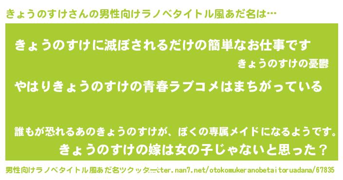 | ファンタジー風あだ名 | 『エターナルキョウノスケー』 |