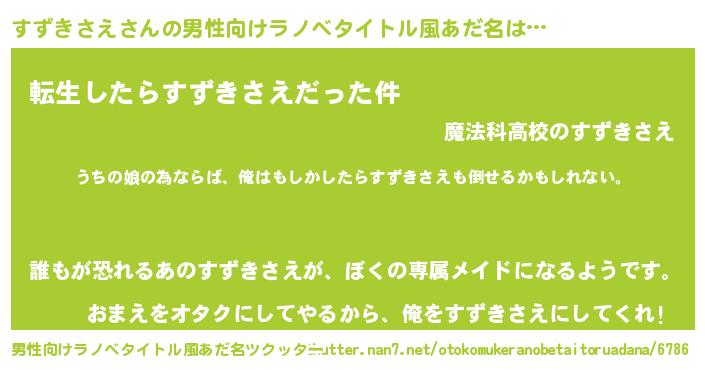 | 女子向けラノベタイトル風あだ名 | 『すずきさえの婚約者』 |