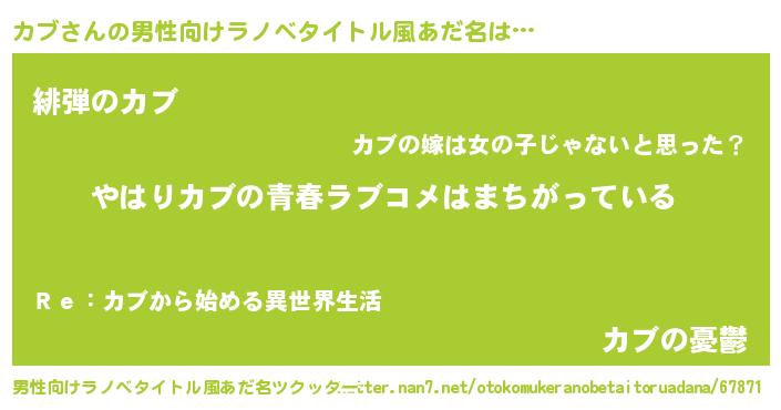 | 女子向けラノベタイトル風あだ名 | 『カブの雑貨屋さん』『カブ様がみてる』 |