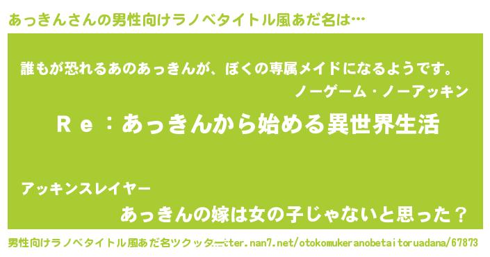| 女子向けラノベタイトル風あだ名 | 『あっきんストレイドッグス』 |