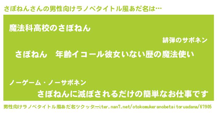 | ヒーロー風カッコイイあだ名 | 『最強戦士サボネン』『愛の使者さぼねん』 |