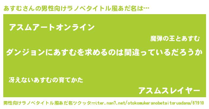 | 女子向けラノベタイトル風あだ名 | 『あすむは平凡を望む』 |