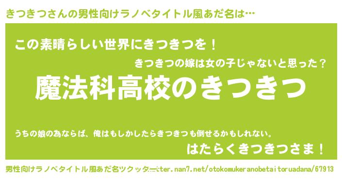 | 女子向けラノベタイトル風あだ名 | 『きつきつなんてお断りですっ。』 |