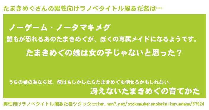 | 女子向けラノベタイトル風あだ名 | 『たまきめぐの卵を拾いまして』 |