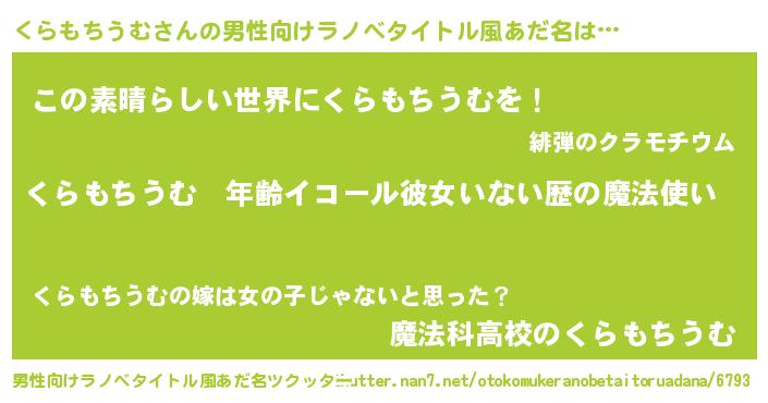 | 胡散臭い通販商品みたいなあだ名 | 『あなたにだけ特別に提供する100年もののヴィンテージワイン…その名も「くらもちうむ」』 |