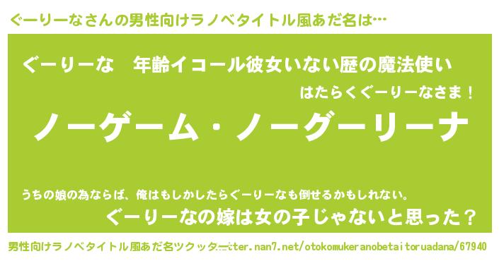 | ヒーロー風カッコイイあだ名 | 『慈愛の使者ぐーりーな』『天弓騎士グー』 |