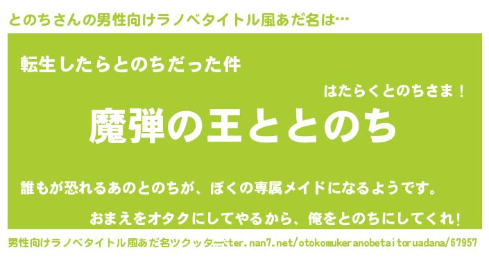 | 意味不明あだ名 | 『住所不定無職とのち(39歳)』 |