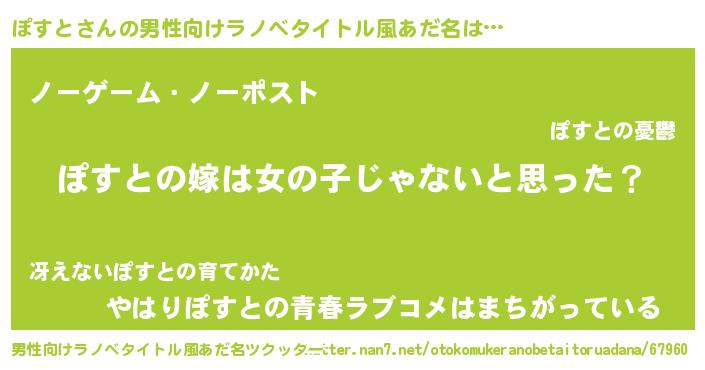 | 女子向けラノベタイトル風あだ名 | 『ぽすと様がみてる』『死神ぽすとの再婚』 |