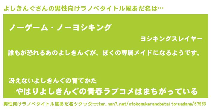 | 女子向けラノベタイトル風あだ名 | 『よしきんぐの契約王妃』 |