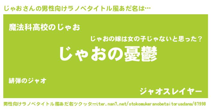 | 胡散臭い通販商品みたいなあだ名 | 『必ず成功するブレスレット…その名も「じゃお」』 |